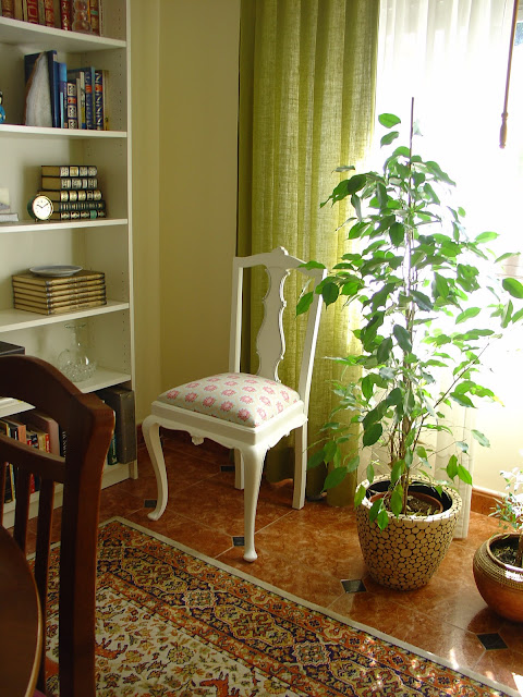 22. Só pode estar feliz com essa roupagem nova, ainda por cima uma cadeira que já tem idade e que agora alguem lhe oferecem uma ida ao "SPA" Só podia sair de lá assim linda e charmosa...