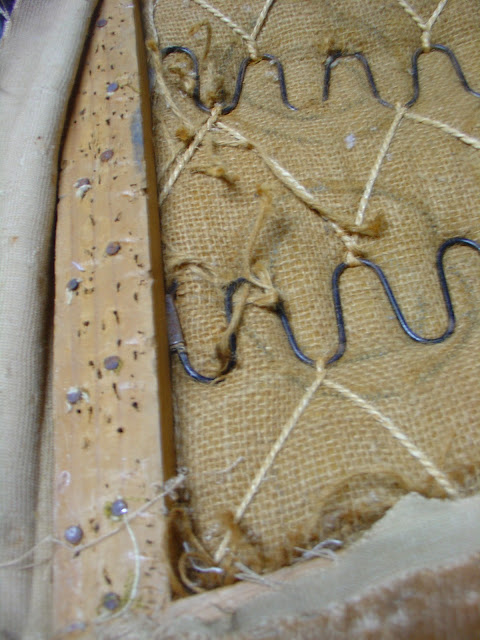 Ao desforrar, encontrei a estrutura de molas. Ainda não tinha passado pelas minhas mãos uma cadeira tão antiga.