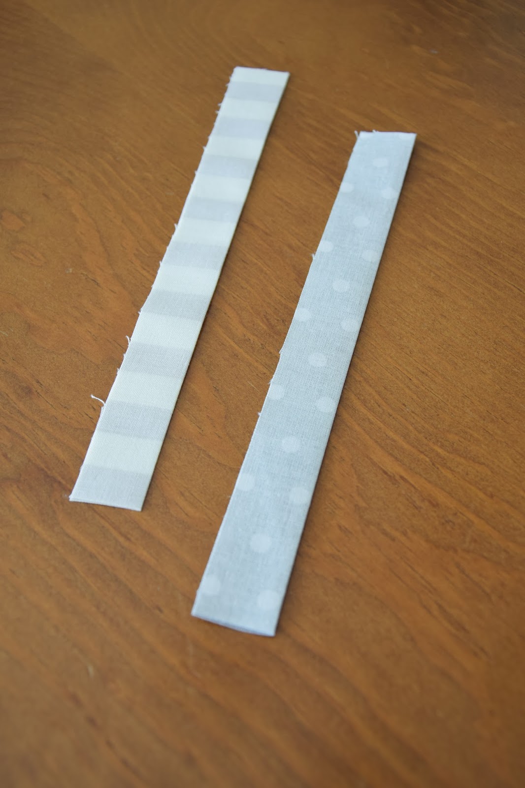 Com a ajuda de um alfinete de ama, virei a tira de tecido para o lado direito e passei a ferro novamente.